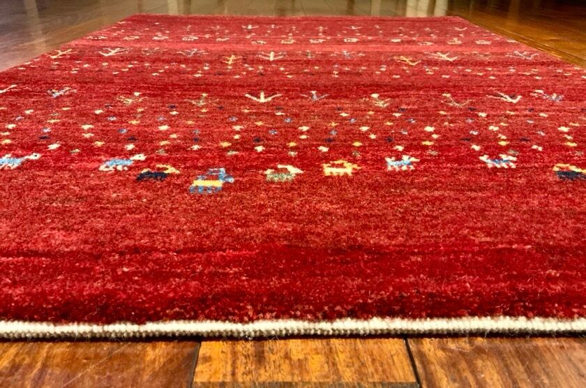 ◇お手入◇ 普段のお手入れは掃除機をかけるだけで十分です。使いはじめは遊び毛が出る事もありますが、使っていくうちに徐々に落ち着いてきます。また、天気の良い場所に干したり、敷き場所や方向など定期的に変えたりする事も長持ちの秘訣です。汚れが気になりクリーニングをお考えの場合、大きいサイズのギャッベですと水を含みかなりの重量になりますので、専門店でのクリーニングをお勧めします。当店でも承りますのでご相談ください。また、長期間使用しないまま保管される場合は、汚れをとり、湿気のない風通しの良い場所に保管して下さい。手織りの絨毯はお手入れ次第で一生あるいは次の世代まで受け継いでいただけます。