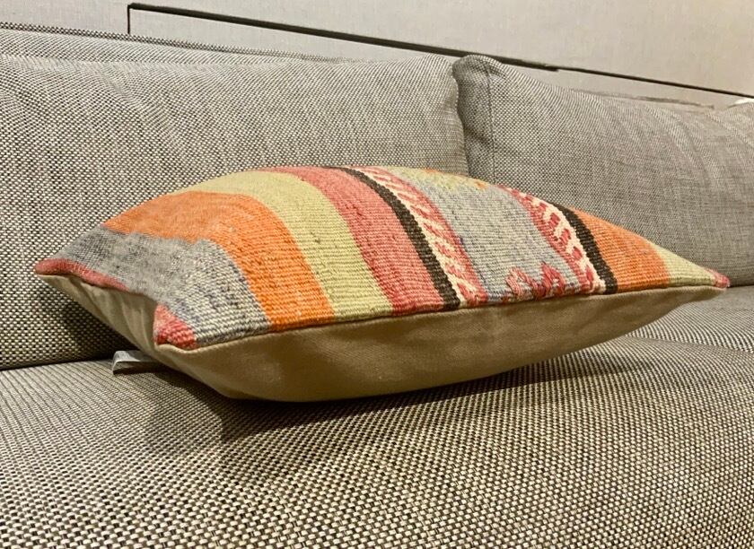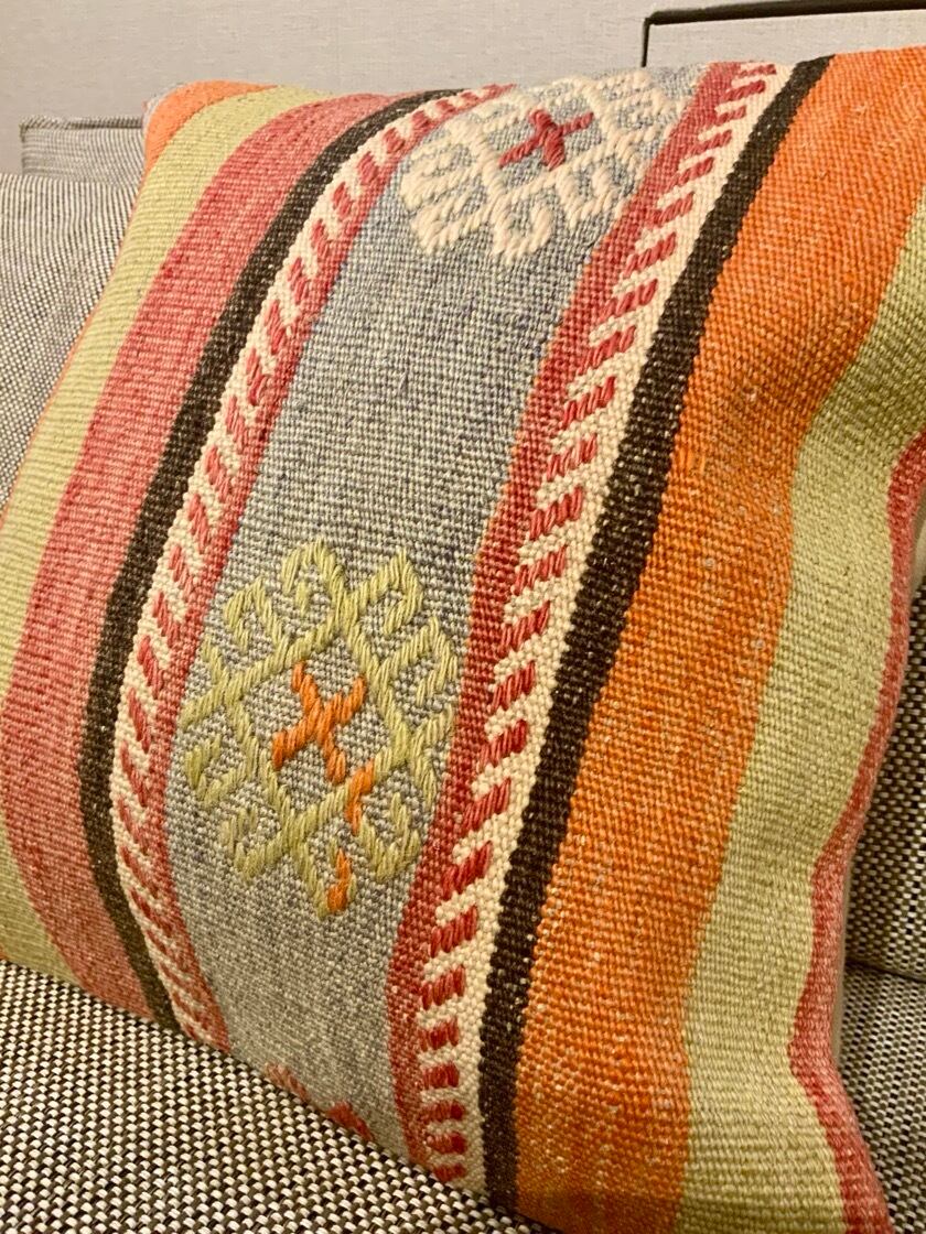 何十年も前に織られたオールドキリムの状態の良い部分をカットして、キリムのクッションカバーにしました。何回も洗い、日に当ててこそ出てくる色合い風合いに趣きを感じます。ソファーにいくつか並べてお洒落にディスプレイしてみてはいかがでしょう。