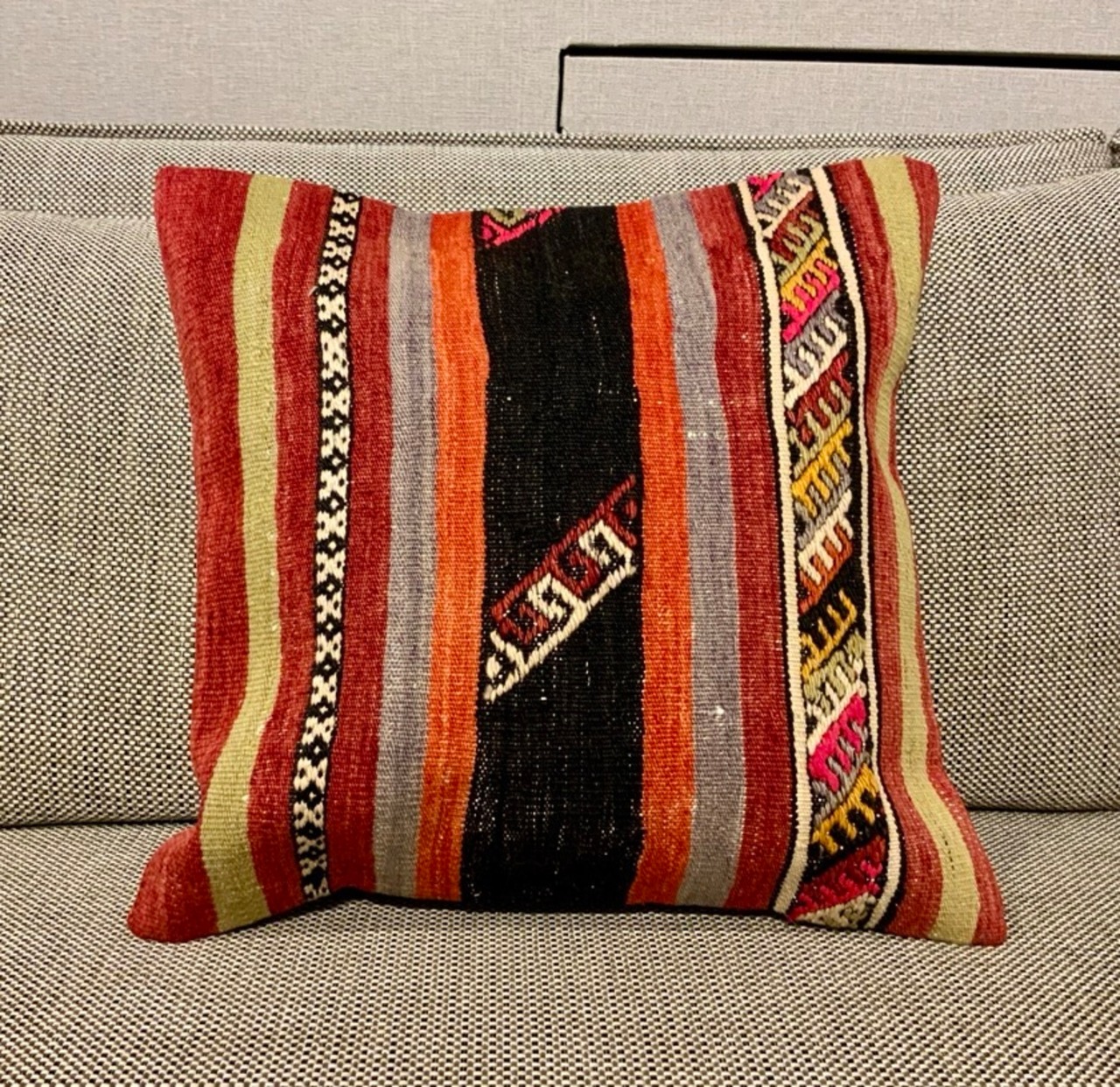 何十年も前に織られたオールドキリムの状態の良い部分をカットして、キリムのクッションカバーにしました。何回も洗い、日に当ててこそ出てくる色合い風合いに趣きを感じます。ソファーにいくつか並べてお洒落にディスプレイしてみてはいかがでしょう。