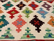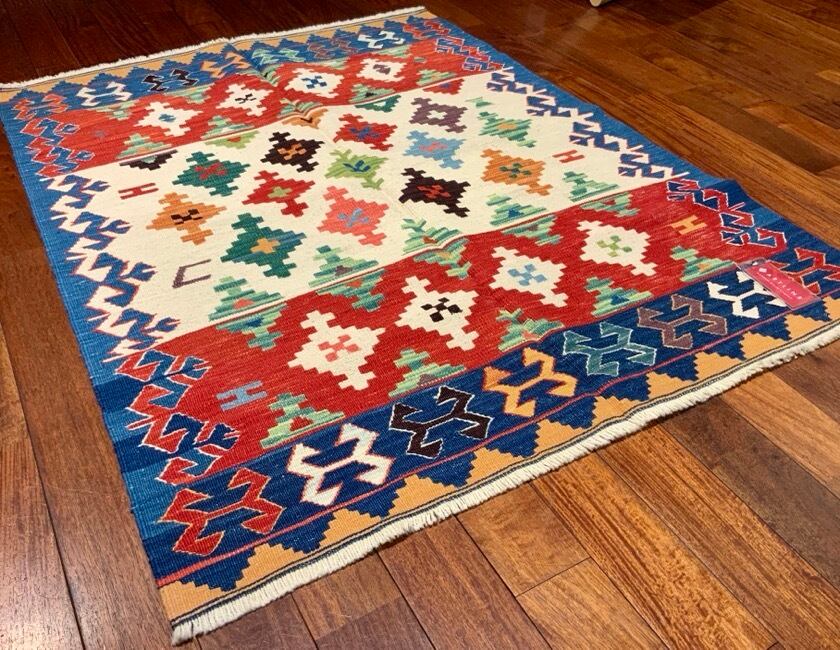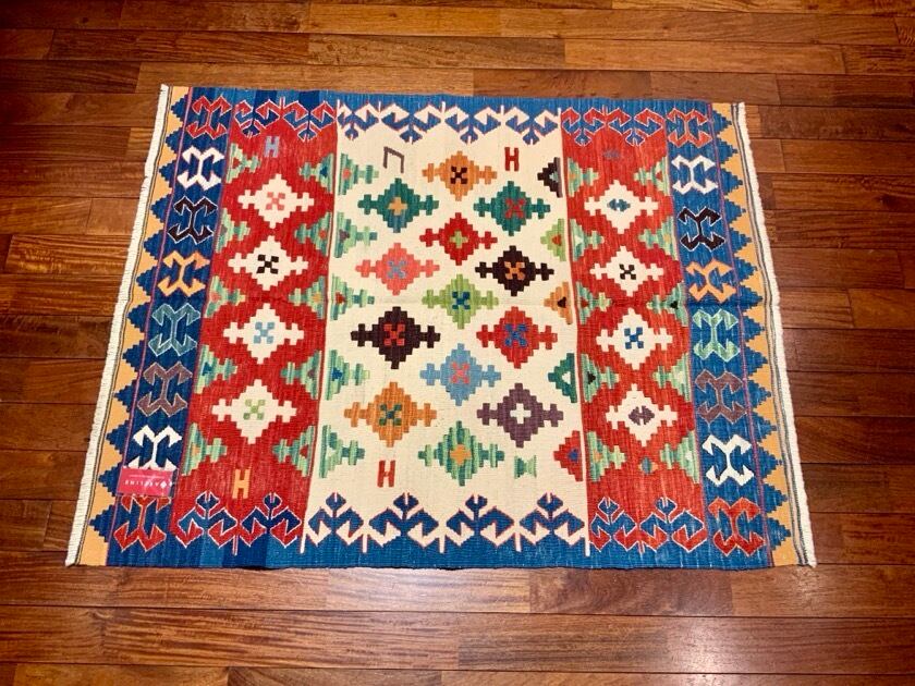 【お手入】 普段のお手入れは掃除機をかけるだけで十分です。また、天気の良い場所に干したり、敷き場所や方向など定期的に変えたりする事も長持ちの秘訣です。汚れが気になったら水洗いもできます。その際は、お湯を使わず水で洗って下さい。夏に屋外で洗う場合、ホースに残っている水は熱くなっていますので、水の温度になってから洗って下さい。ご自分で洗うのが大変だという方には、専門店でのクリーニングをお勧めします。当店でも承りますのでご相談ください。また、長期間使用しないまま保管される場合は、汚れをとり、湿気のない風通しの良い場所に保管して下さい。手織りの絨毯、キリムはお手入れ次第で一生あるいは次の世代まで受け継いでいただけます。