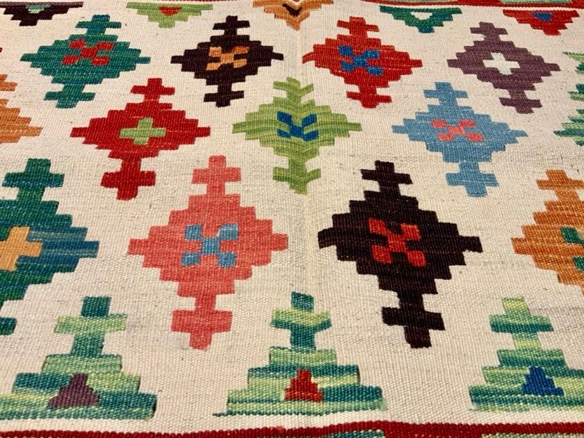 キリムとは、イスラム圏で織られている平織りの織物のこと。トルコ、イラン、アゼルバイジャンなどの中央アジアの多くの国で昔から織られている伝統の織物です。元々は生活のための道具として、嫁入り道具として自分たちのために織られてましたが、そのデザイン性の素晴らしさは世界中に広まり、愛用者を増やしています。中でも、トルコキリムは欧米で大変人気があるため「キリム」というトルコ語が世界中で通用するようになりました。