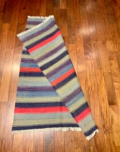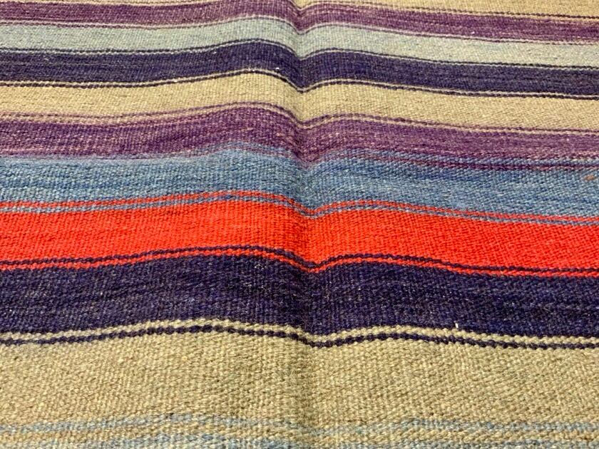 イランカシュガイ族が草木染・手織りで織り上げる平織のキリムです。遊牧民にとってキリムは穀物袋やラクダの背中に乗せる袋など生活用具を作る生地としての役割があり、家族の幸せを願うデザインが施されています。