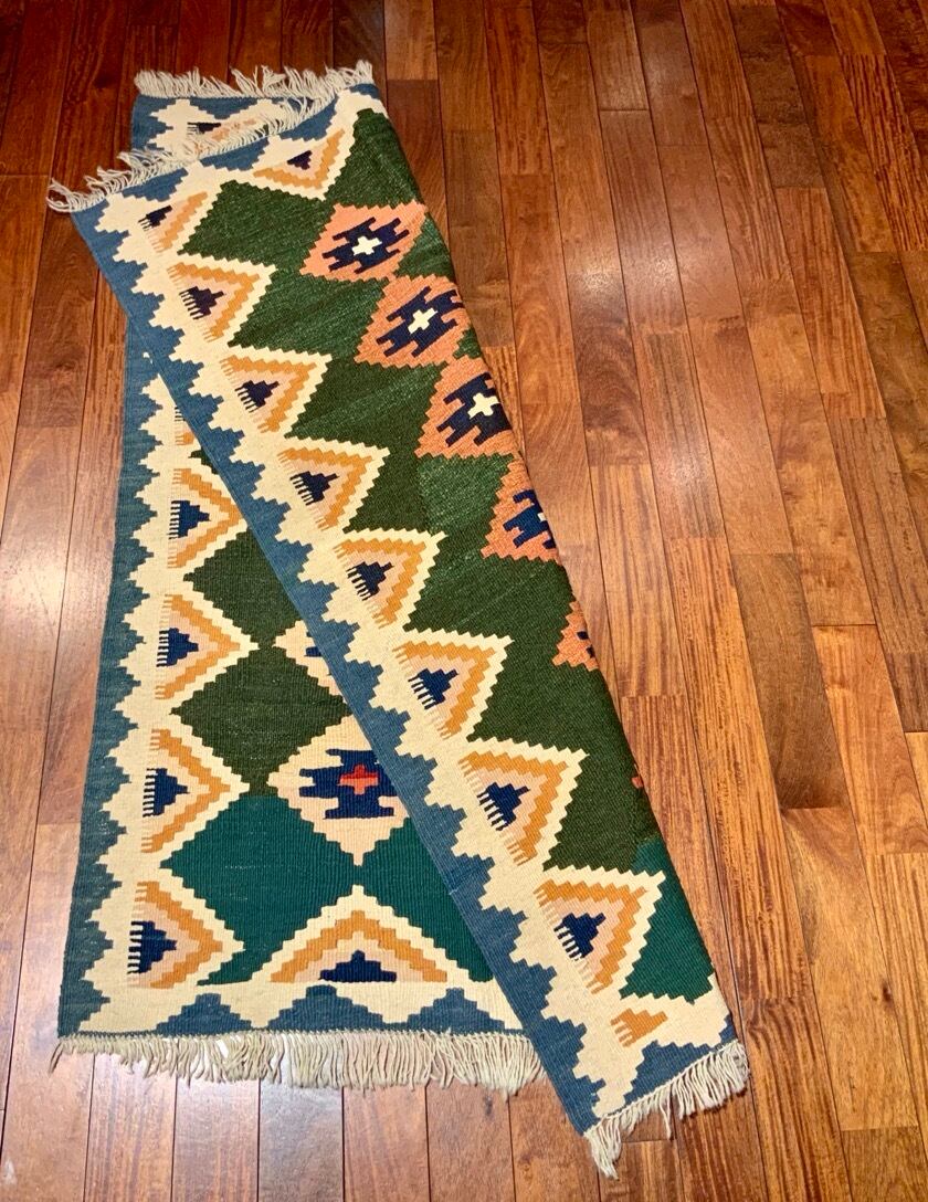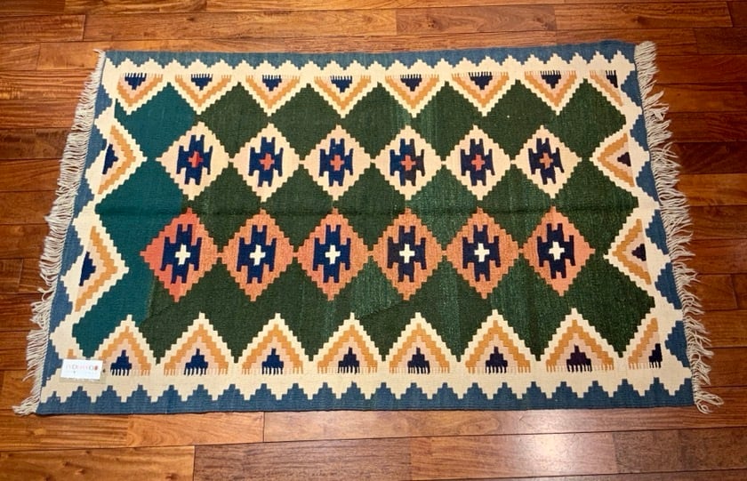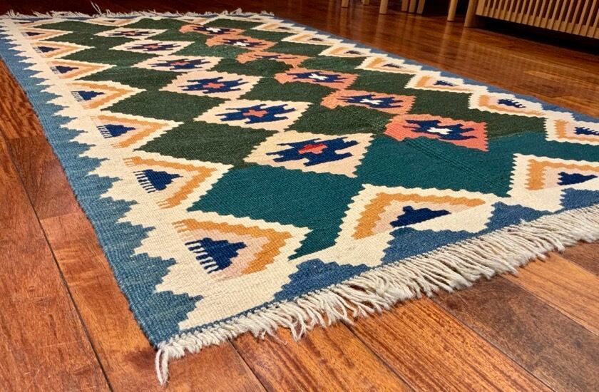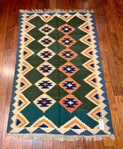 【お手入】 普段のお手入れは掃除機をかけるだけで十分です。また、天気の良い場所に干したり、敷き場所や方向など定期的に変えたりする事も長持ちの秘訣です。汚れが気になったら水洗いもできます。その際は、お湯を使わず水で洗って下さい。夏に屋外で洗う場合、ホースに残っている水は熱くなっていますので、水の温度になってから洗って下さい。ご自分で洗うのが大変だという方には、専門店でのクリーニングをお勧めします。当店でも承りますのでご相談ください。また、長期間使用しないまま保管される場合は、汚れをとり、湿気のない風通しの良い場所に保管して下さい。手織りの絨毯、キリムはお手入れ次第で一生あるいは次の世代まで受け継いでいただけます。