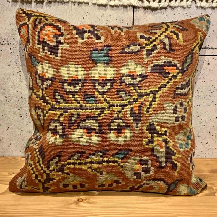 何十年も前に織られたオールドキリムの状態の良い部分をカットしてキリムのクッションカバーにしました。何回も洗い、日に当ててこそ出てくる色合い風合いに趣きを感じます。こソファーにいくつか並べてお洒落にディスプレイしてみてはいかがでしょう。