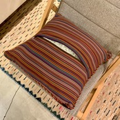 初めてキリムを手にされる方には、チクチクするという感触があるかもしれません。感じ方には個人差がありますが、それがキリムの風合いという事をご理解下さいませ。チクチク感が気になるという方には、使い方としまして頭や顔をつけるときには滑らかな肌触りの裏地を、インテリアとして楽しまれる時にはキリム面を出してご使用されることをご提案いたします。