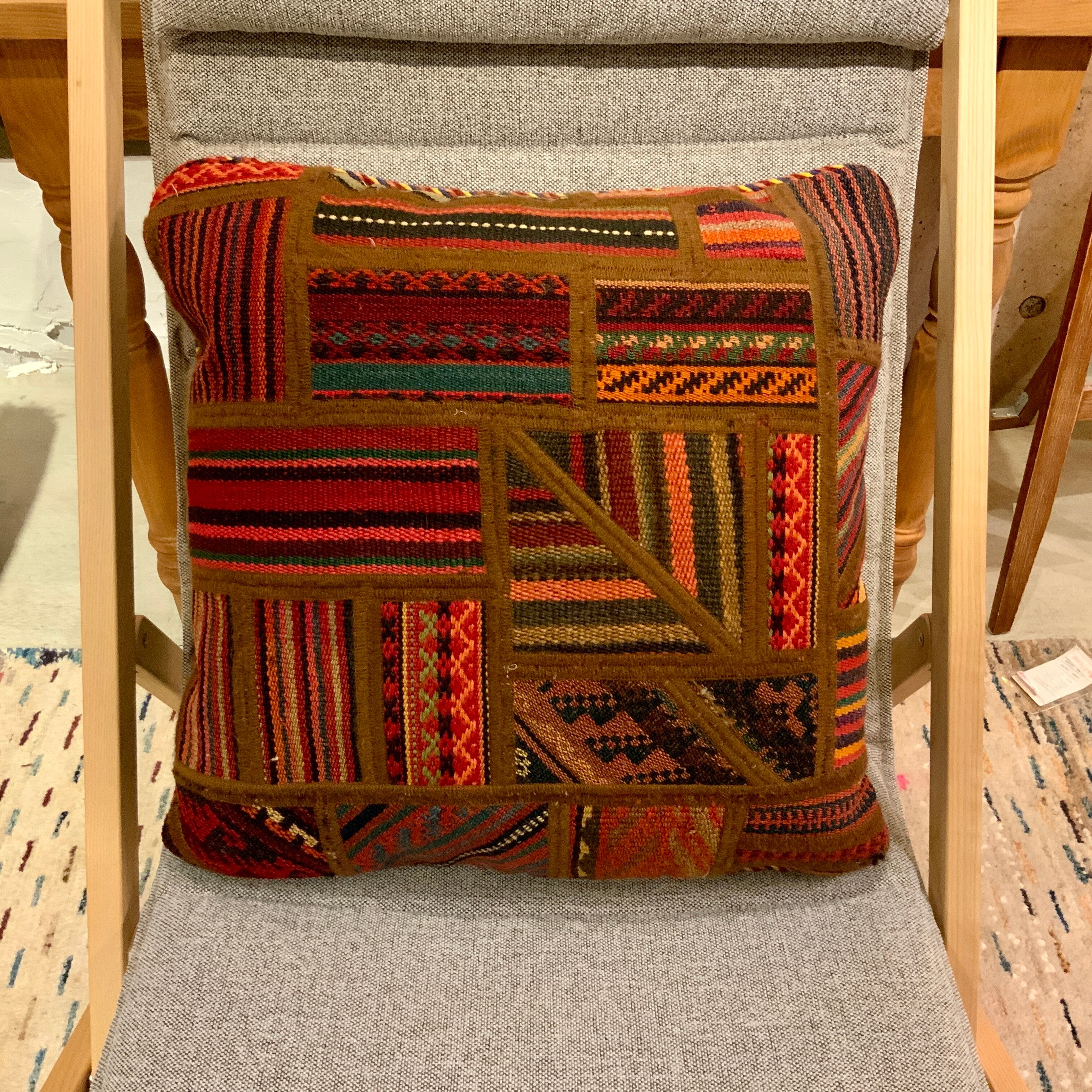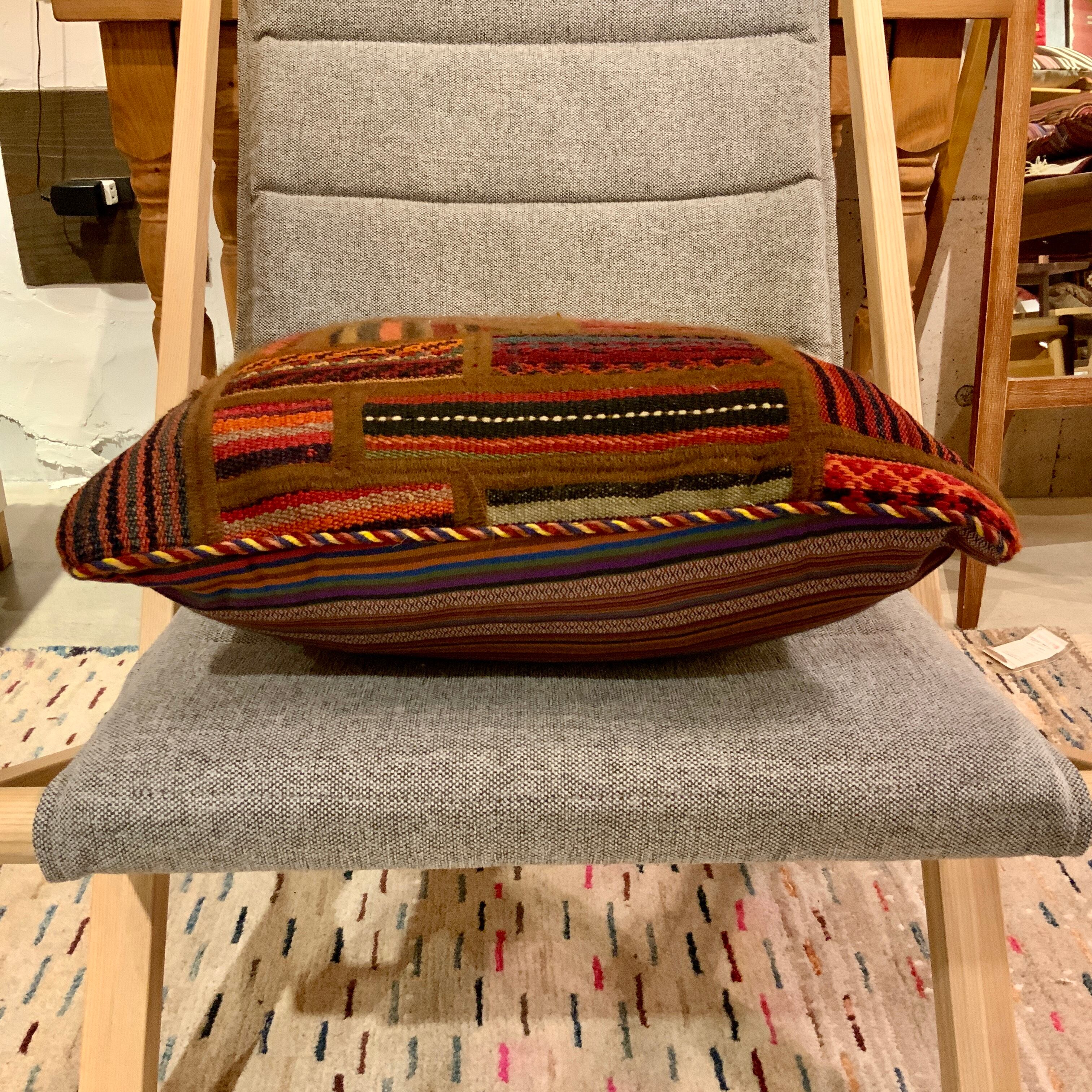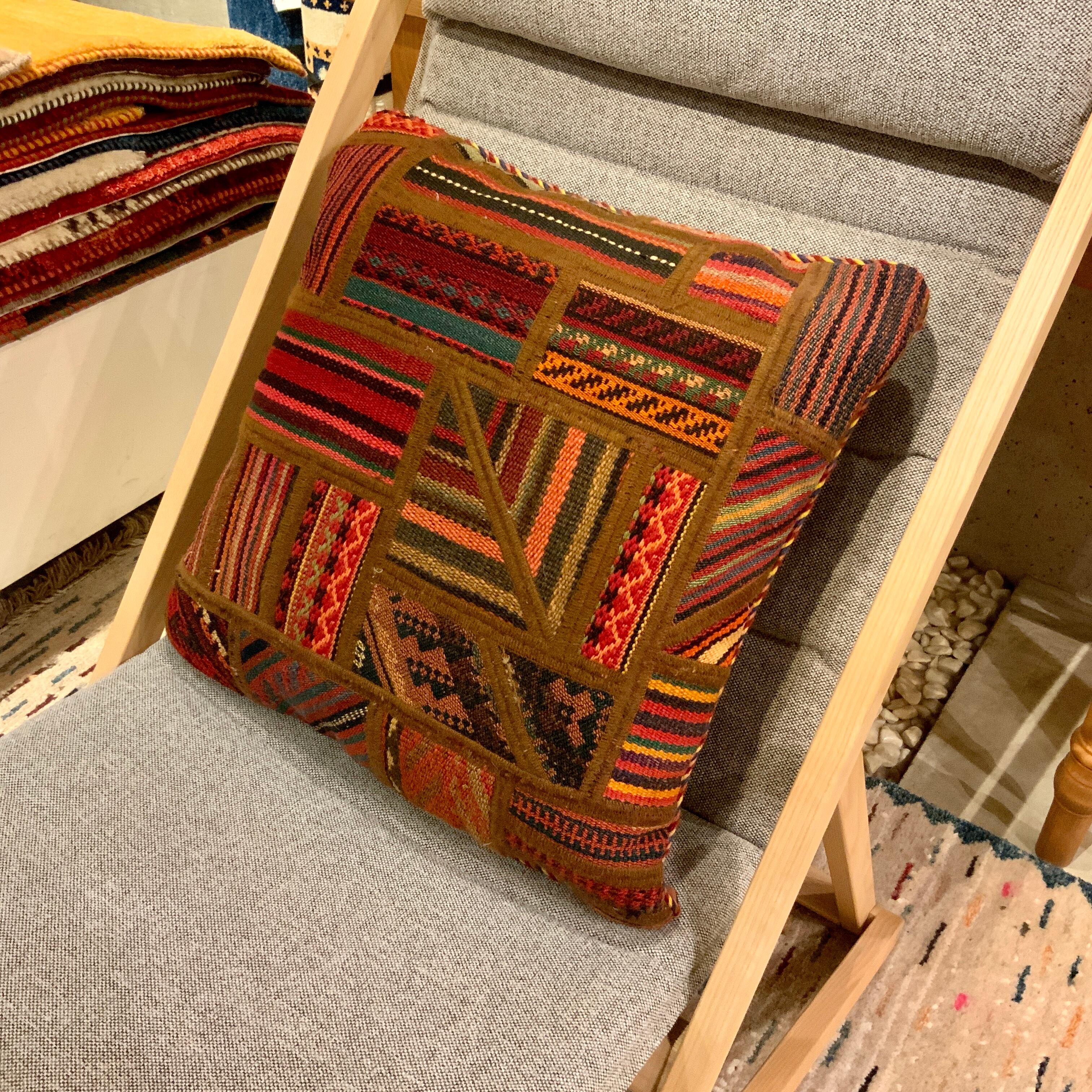 何十年も前に織られたオールドキリムの状態の良い部分をカットしてパッチワークに仕上げ、キリムのクッションカバーにしました。何回も洗い、日に当ててこそ出てくる色合い風合いに趣きを感じます。ソファーにいくつか並べてお洒落にディスプレイしてみてはいかがでしょう。