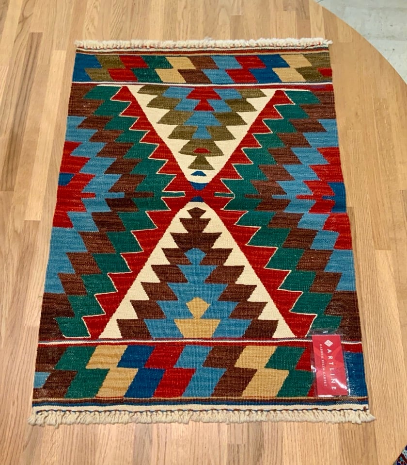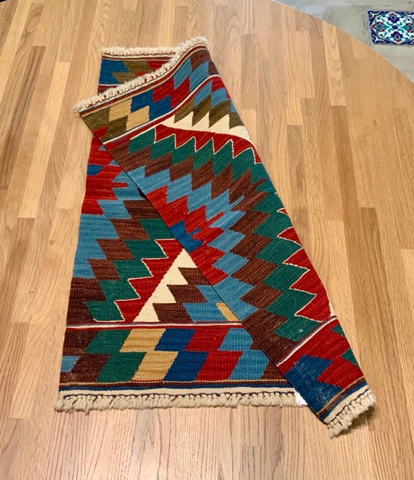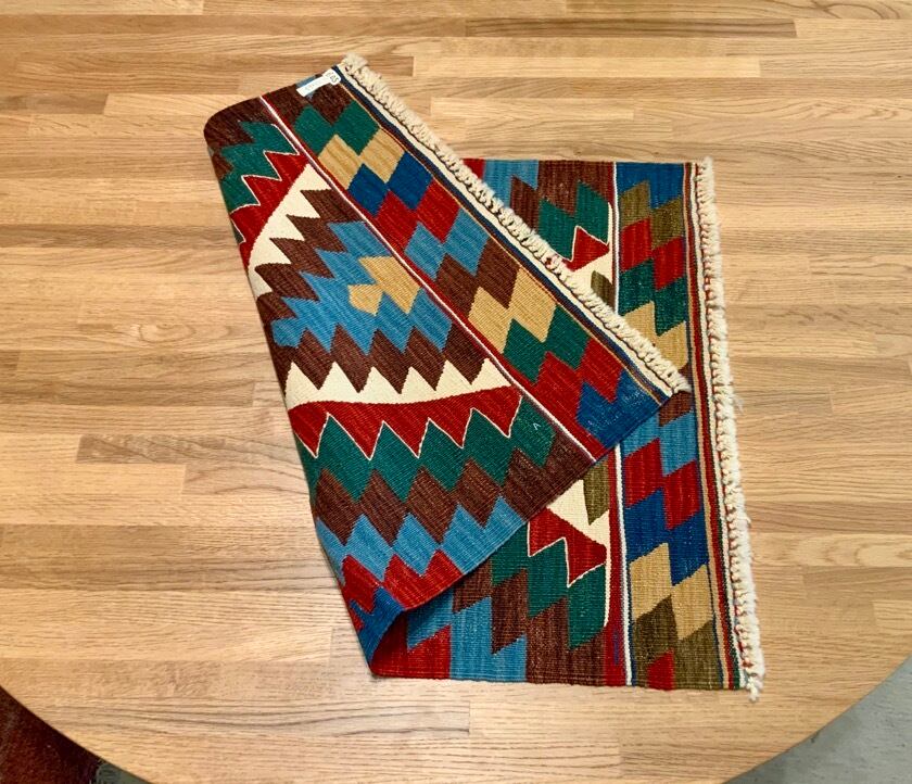 こちらのキリムはトルコにある、アートラインの自社工房で織ったキリムです。アンゴラ羊の毛と子羊の毛を混ぜた手紬の糸で織りあげるため、とてもしなやかなキリムに仕上がります。