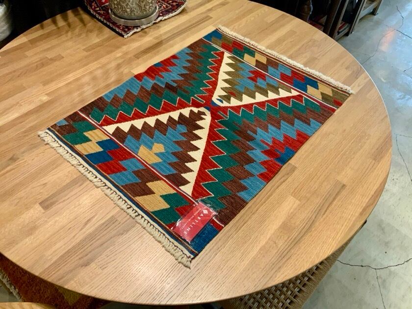 キリムとは、イスラム圏で織られている平織りの織物のこと。トルコ、イラン、アゼルバイジャンなどの中央アジアの多くの国で昔から織られている伝統の織物です。