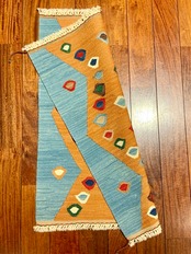 キリムとは、イスラム圏で織られている平織りの織物のこと。トルコ、イラン、アゼルバイジャンなどの中央アジアの多くの国で昔から織られている伝統の織物です。