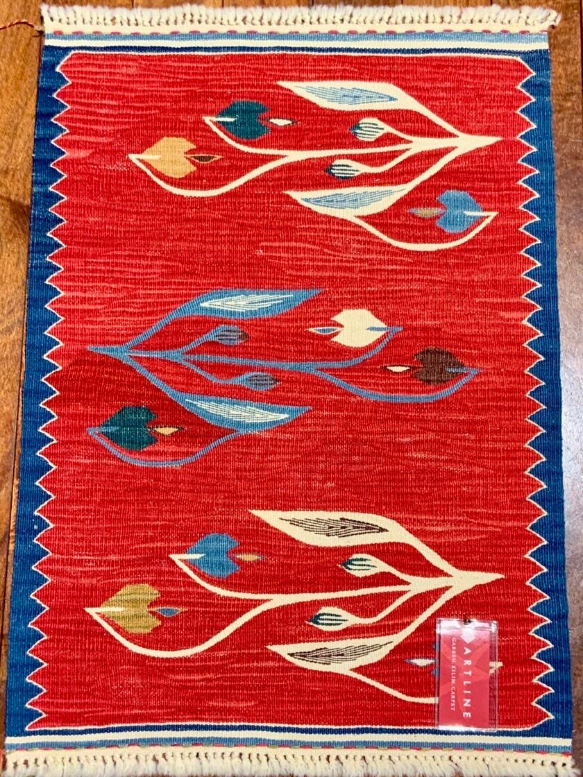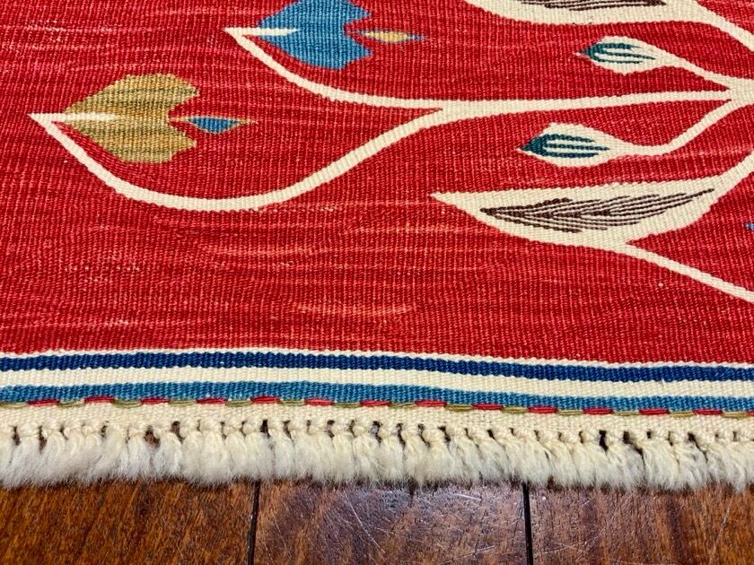 こちらのキリムはトルコにある、アートラインの自社工房で織ったキリムです。アンゴラ羊の毛と子羊の毛を混ぜた手紬の糸で織りあげるため、とてもしなやかなキリムに仕上がります。