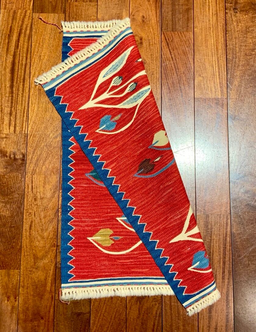 キリムとは、イスラム圏で織られている平織りの織物のこと。トルコ、イラン、アゼルバイジャンなどの中央アジアの多くの国で昔から織られている伝統の織物です。