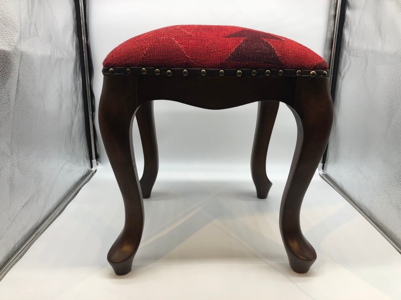 座面に使用している、真っ赤に染め直したオールドキリムがかっこいいですね!
