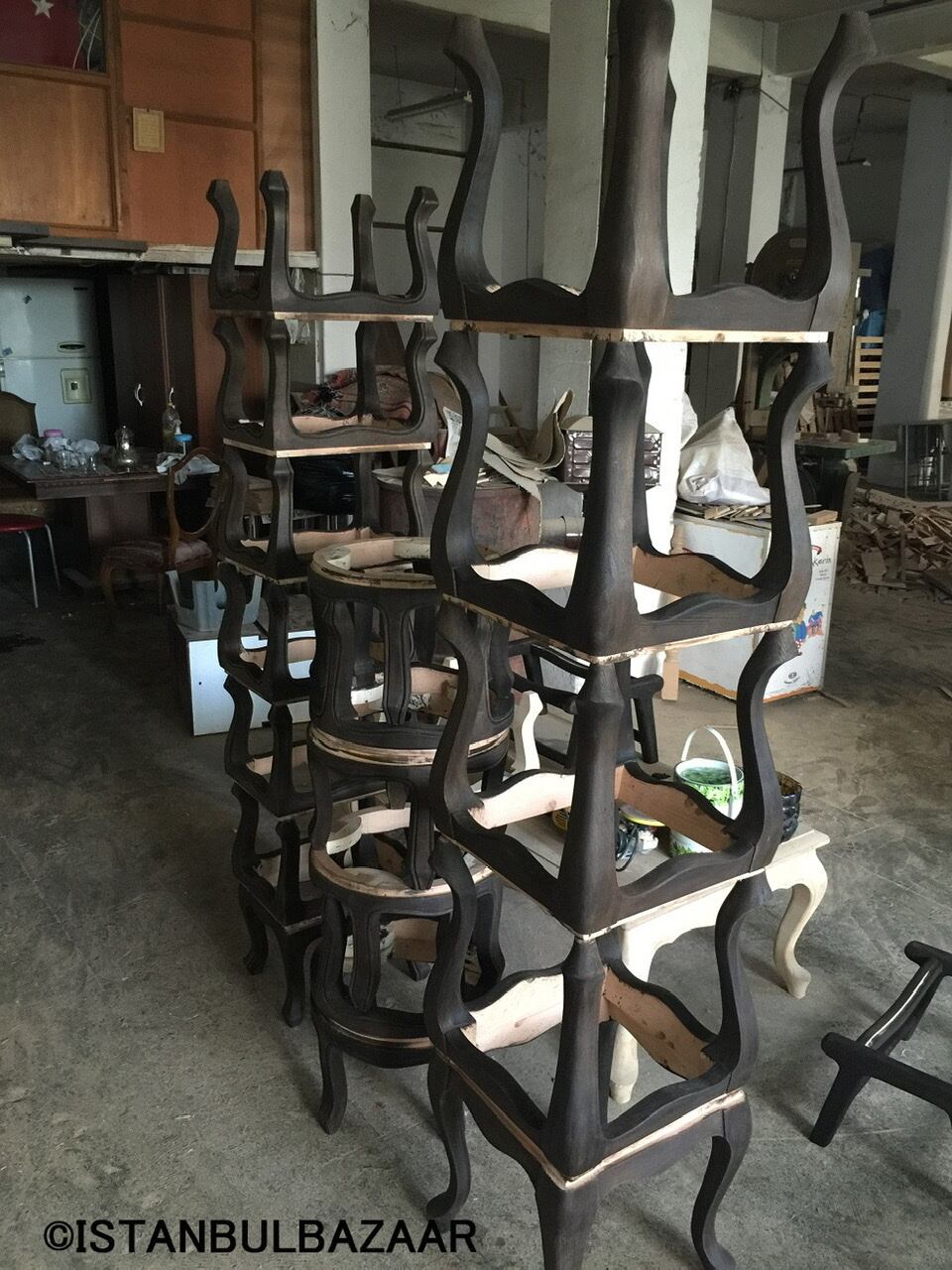 何十年も前に織られ、長い年月を過ごしてきたオールドキリムは、トルコの強い日差しにあたり、使い込まれ、独特な風合いを醸し出しています。そのオールドキリムをカットし、トルコのアトリエでチェアーを製作しました。熟練の家具職人さんの手作りのチェアーです。フレームはビーチ材(日本ではブナ)を使用していますので丈夫です。座面に張るキリムはきれいにメンテナンスを済ませてから張っています。女性が自由に持ち運べる重さですので、使いたい場所に持ち運びが出来る扱いやすい逸品です。オールドキリムのスツールは、置いておくだけでも素敵なインテリアになりますね。座り心地抜群のキリムチェアー。