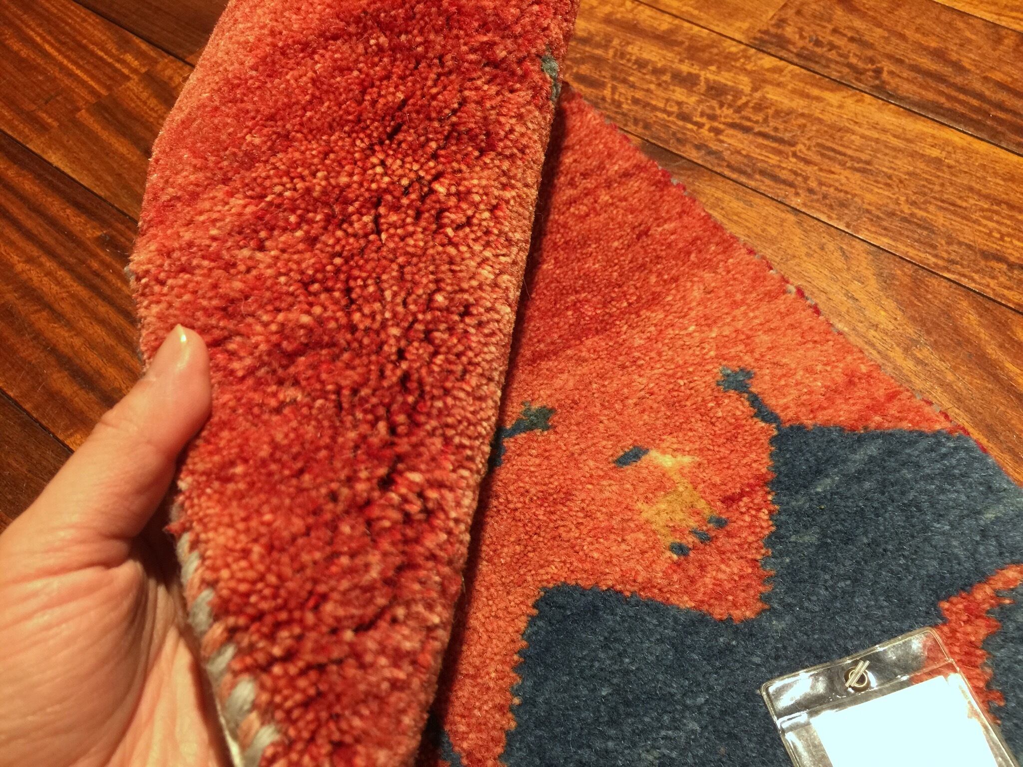【お手入】 普段のお手入れは掃除機をかけるだけで十分です。使いはじめは遊び毛が出る事もありますが、使っていくうちに徐々に落ち着いてきます。また、天気の良い場所に干したり、敷き場所や方向など定期的に変えたりする事も長持ちの秘訣です。汚れが気になりクリーニングをお考えの場合、大きいサイズのギャッベですと水を含みかなりの重量になりますので、専門店でのクリーニングをお勧めしますが、このサイズでしたら自分で水洗いが出来そうです。その際は、お湯は使わずお水で洗って下さいね。ウール用の洗剤などで柔らかめのブラシで汚れを落として下さい。泡をしっかりと濯いだ後に水けをしっかりとって太陽の下で干して下さい。クリーニングに出される場合は当店でも承りますのでご相談ください。また、長期間使用しないまま保管される場合は、汚れをとり、湿気のない風通しの良い場所に保管して下さい。手織りの絨毯はお手入れ次第で一生あるいは次の世代まで受け継いでいただけます。