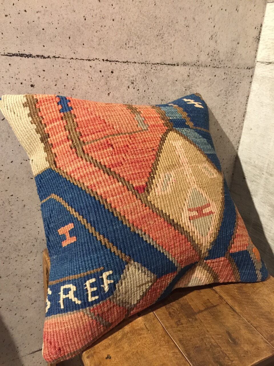 何十年も前に織られたオールドキリムの状態の良い部分をカットしてパッチワークに仕上げ、キリムのクッションカバーにしました。何回も洗い、日に当ててこそ出てくる色合い風合いに趣きを感じます。ソファーにいくつか並べてお洒落にディスプレイしてみてはいかがでしょう。
