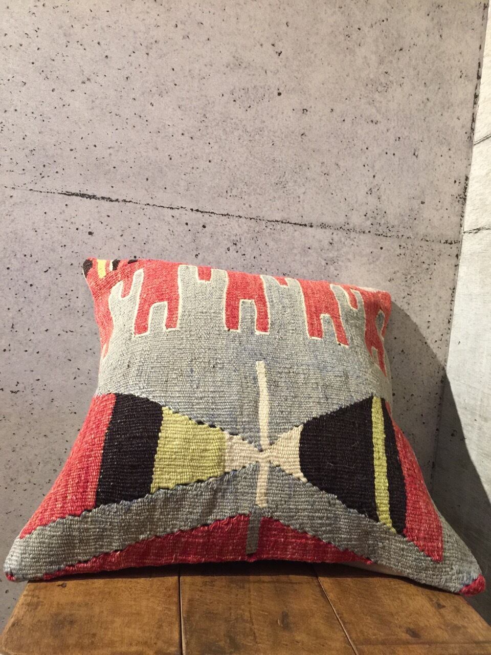 何十年も前に織られたオールドキリムの状態の良い部分をカットしてパッチワークに仕上げ、キリムのクッションカバーにしました。何回も洗い、日に当ててこそ出てくる色合い風合いに趣きを感じます。ソファーにいくつか並べてお洒落にディスプレイしてみてはいかがでしょう。