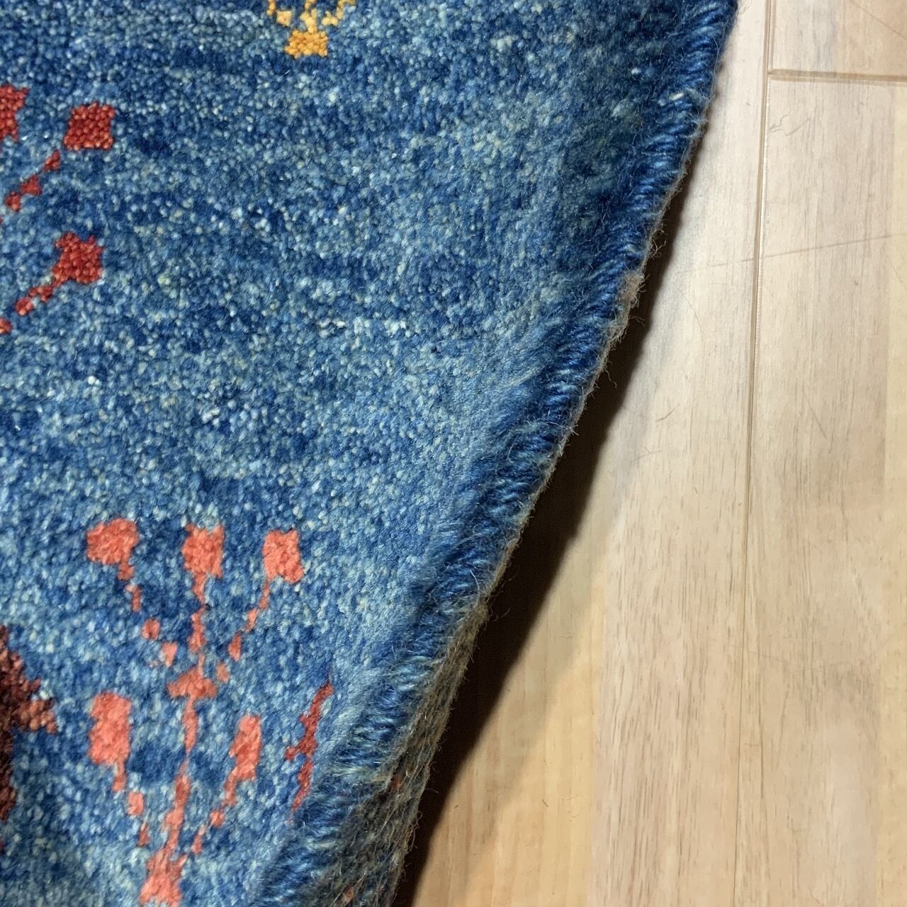 【お手入】 普段のお手入れは掃除機をかけるだけで十分です。使いはじめは遊び毛が出る事もありますが、使っていくうちに徐々に落ち着いてきます。また、天気の良い場所に干したり、敷き場所や方向など定期的に変えたりする事も長持ちの秘訣です。汚れが気になりクリーニングをお考えの場合、大きいサイズのギャッベですと水を含みかなりの重量になりますので、専門店でのクリーニングをお勧めしますが、このサイズでしたら自分で水洗いが出来そうです。その際は、お湯は使わずお水で洗って下さいね。ウール用の洗剤などで柔らかめのブラシで汚れを落として下さい。泡をしっかりと濯いだ後に水けをしっかりとって太陽の下で干して下さい。クリーニングに出される場合は当店でも承りますのでご相談ください。また、長期間使用しないまま保管される場合は、汚れをとり、湿気のない風通しの良い場所に保管して下さい。手織りの絨毯はお手入れ次第で一生あるいは次の世代まで受け継いでいただけます。