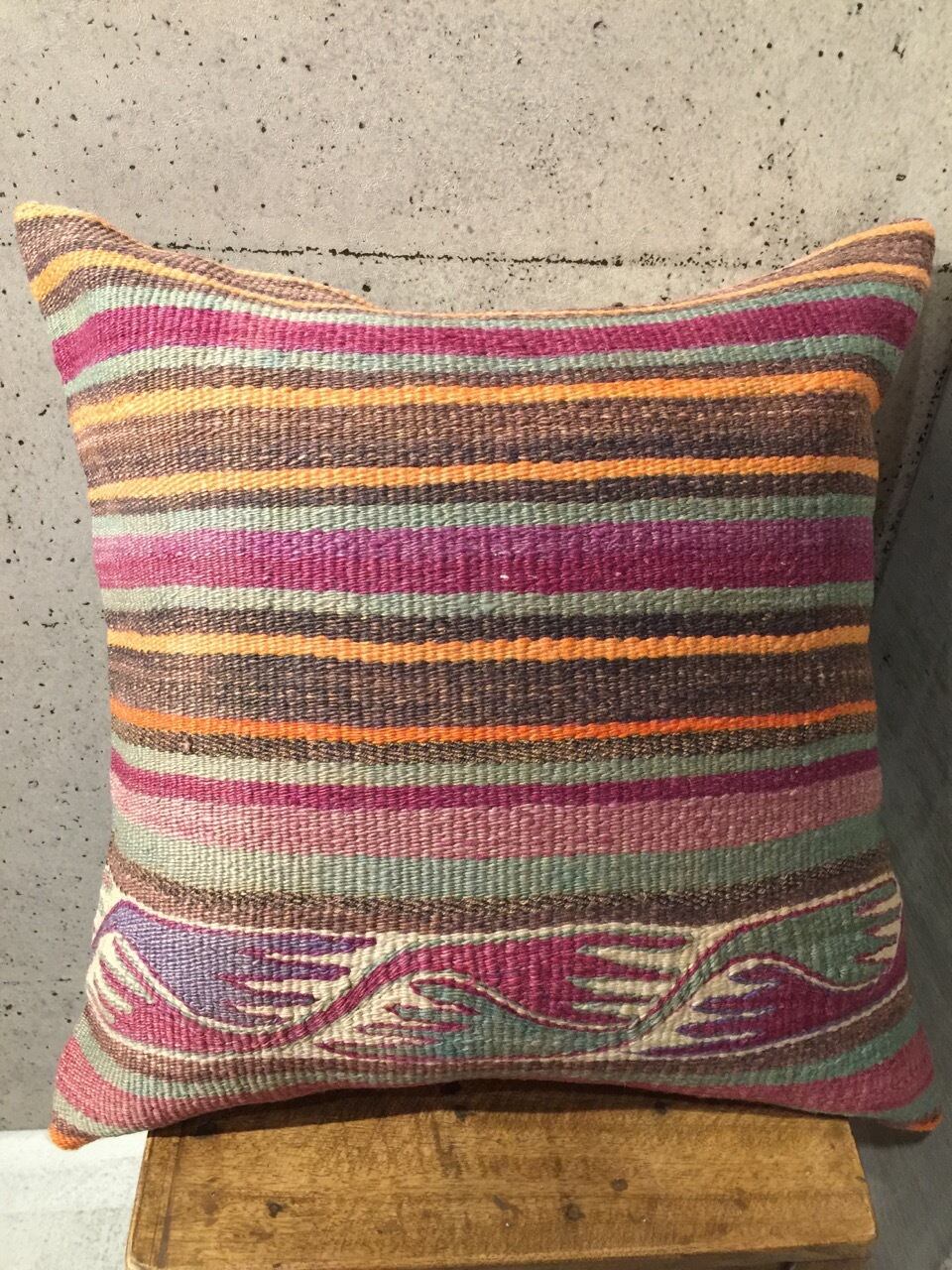 何十年も前に織られたオールドキリムの状態の良い部分をカットしてキリムのクッションカバーにしました。何回も洗い、日に当ててこそ出てくる色合い風合いに趣きを感じます。ソファーにいくつか並べてお洒落にディスプレイしてみてはいかがでしょう。
