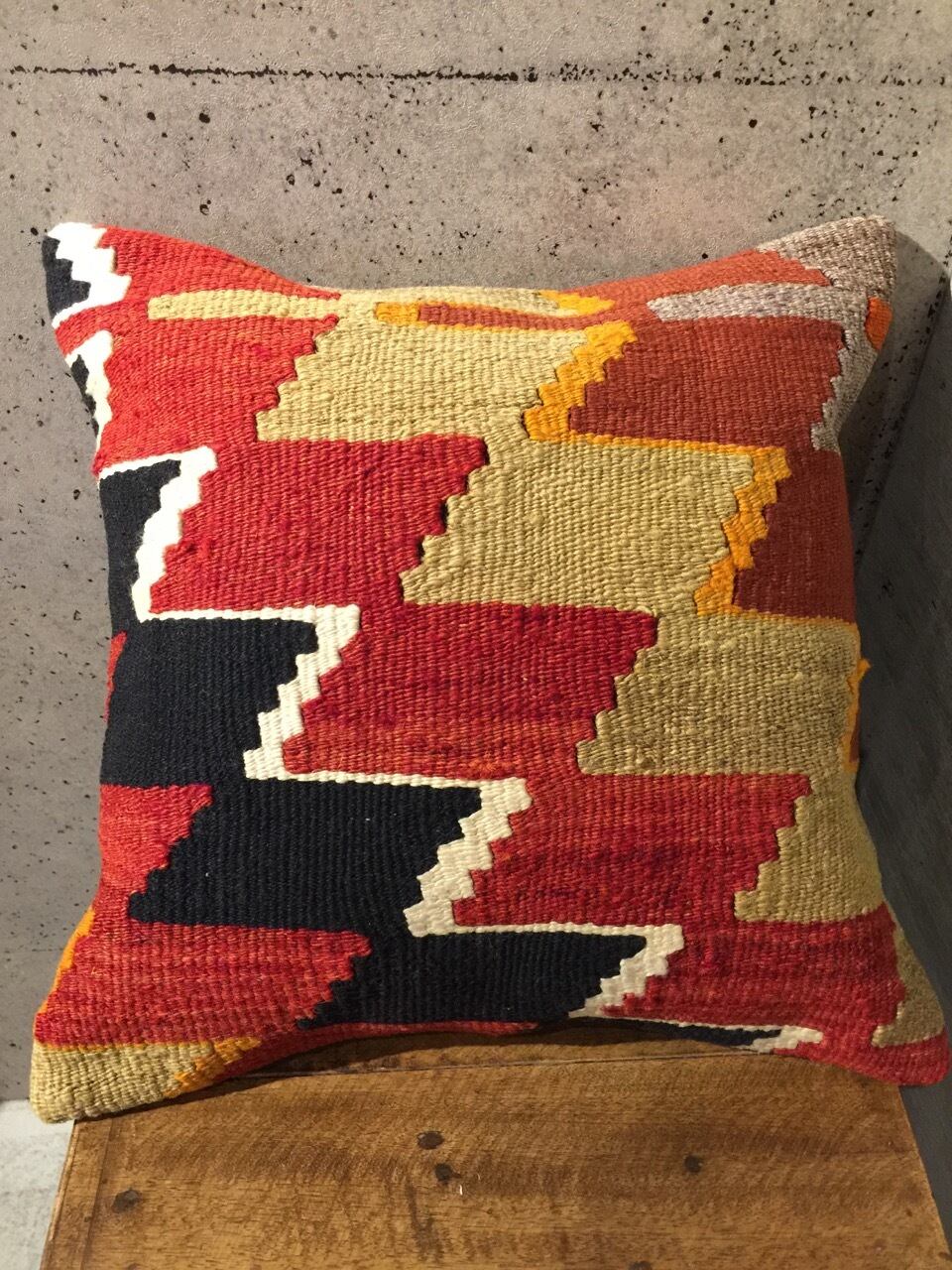 何十年も前に織られたオールドキリムの状態の良い部分をカットして、キリムのクッションカバーにしました。何回も洗い、日に当ててこそ出てくる色合い風合いに趣きを感じます。ソファーにいくつか並べてお洒落にディスプレイしてみてはいかがでしょう。