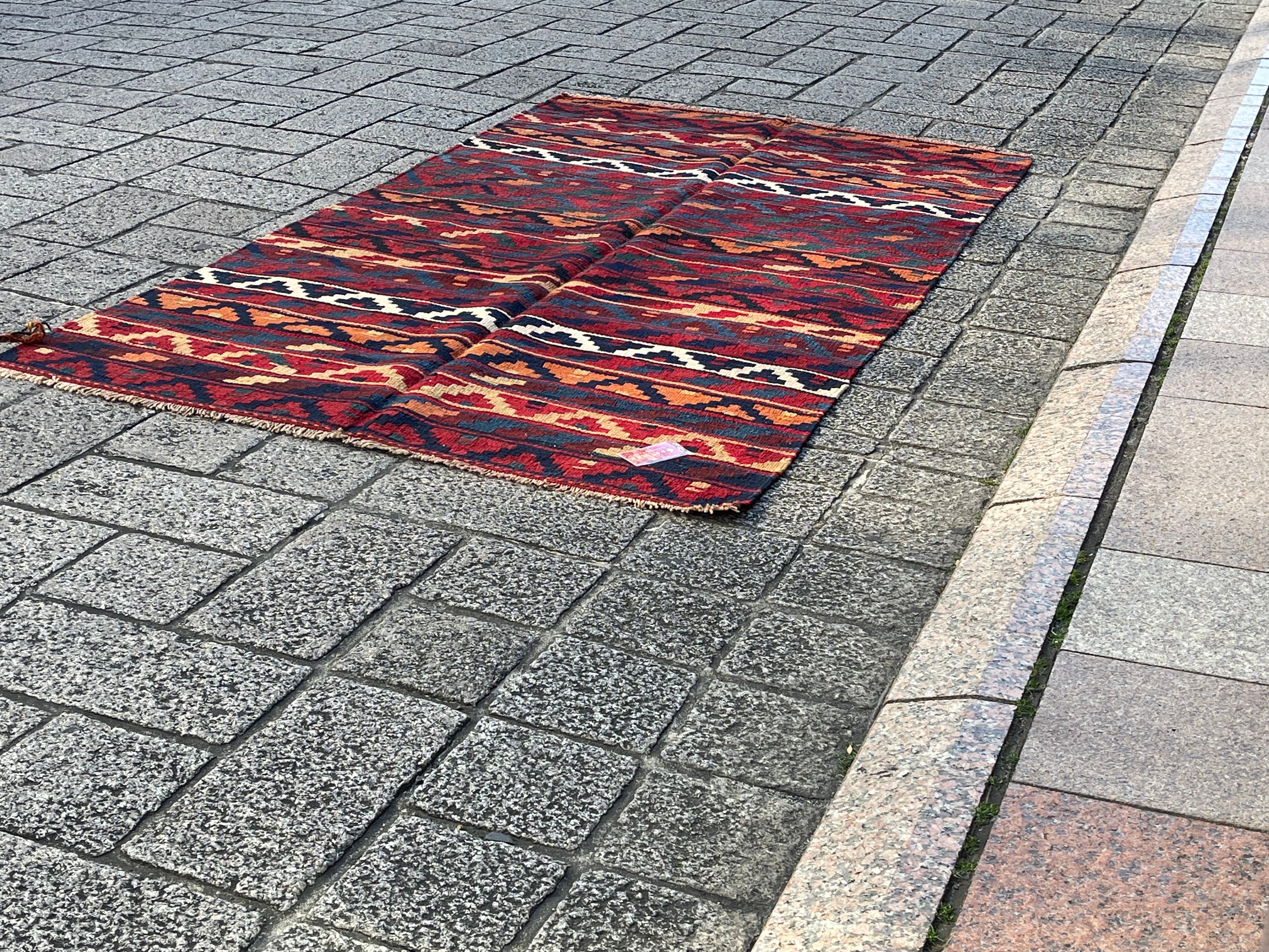 【お手入】 普段のお手入れは掃除機をかけるだけで十分です。天気の良い場所に干したり、敷き場所や方向など定期的に変えたりする事も長持ちの秘訣です。汚れが気になりクリーニングをお考えの場合には、専門店でのクリーニングをお勧めします。当店でも承りますのでご相談ください。また、長期間使用しないまま保管される場合は、汚れをとり、湿気のない風通しの良い場所に保管して下さい。手織りのキリムはお手入れ次第で一生あるいは次の世代まで受け継いでいただけます。