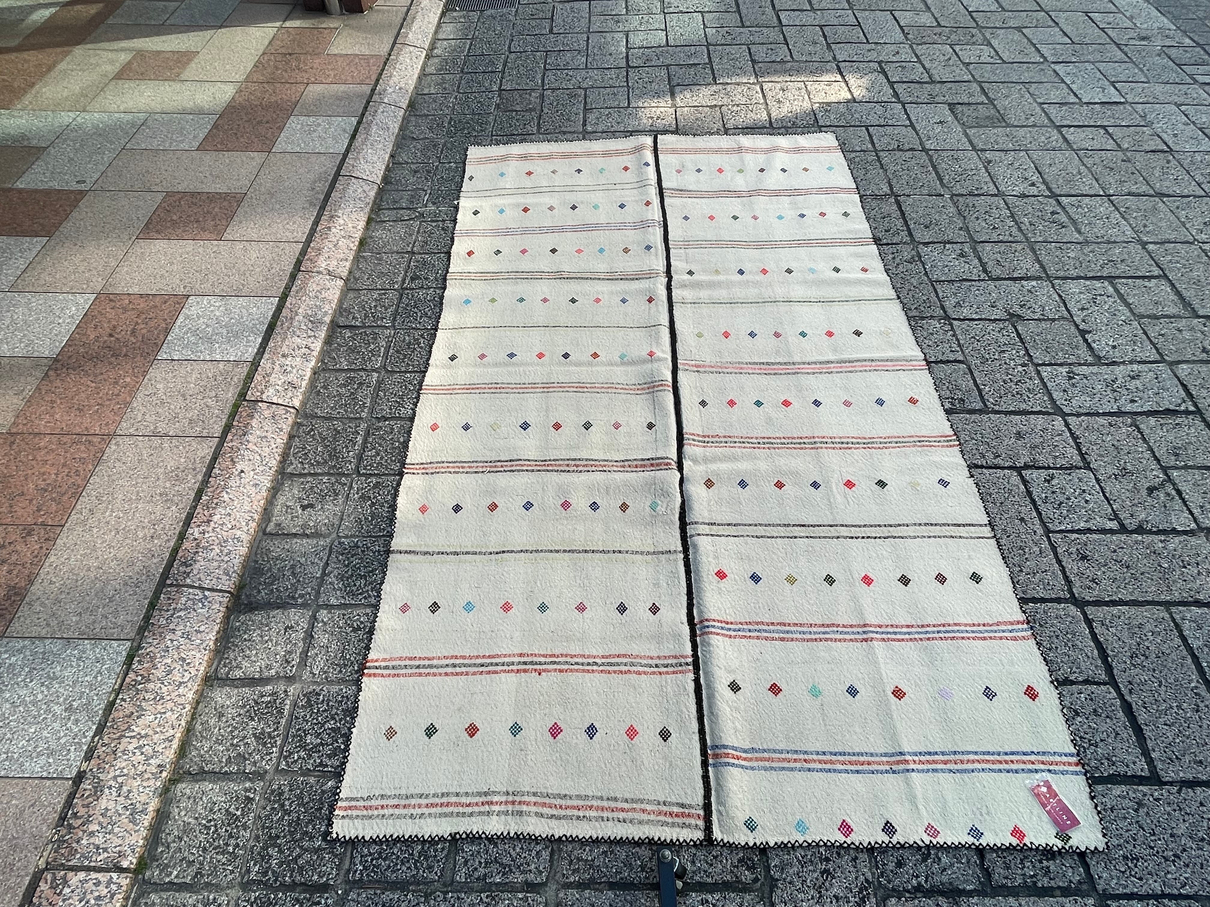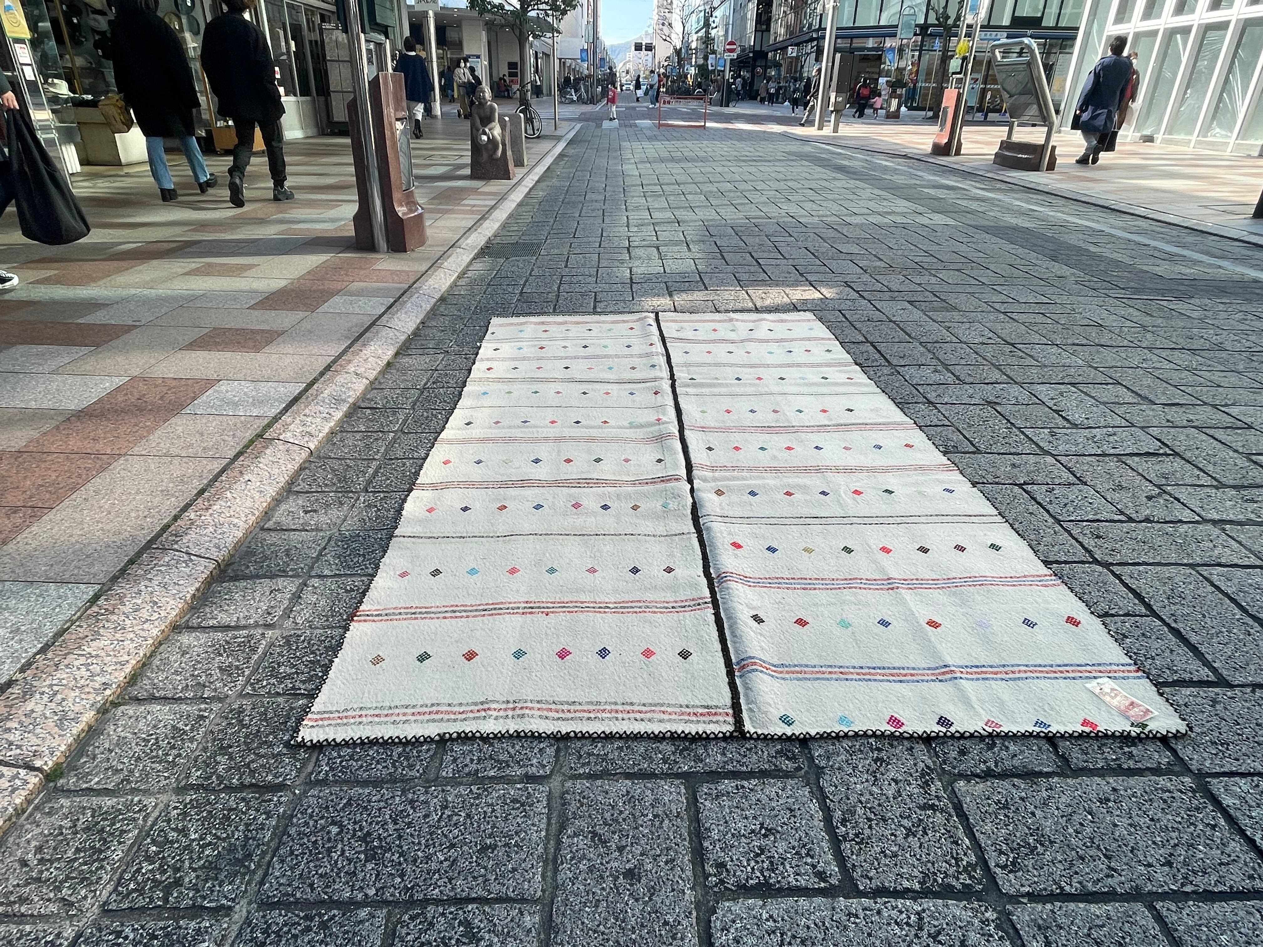 【お手入】 普段のお手入れは掃除機をかけるだけで十分です。天気の良い場所に干したり、敷き場所や方向など定期的に変えたりする事も長持ちの秘訣です。汚れが気になりクリーニングをお考えの場合には、専門店でのクリーニングをお勧めします。当店でも承りますのでご相談ください。また、長期間使用しないまま保管される場合は、汚れをとり、湿気のない風通しの良い場所に保管して下さい。手織りのキリムはお手入れ次第で一生あるいは次の世代まで受け継いでいただけます。