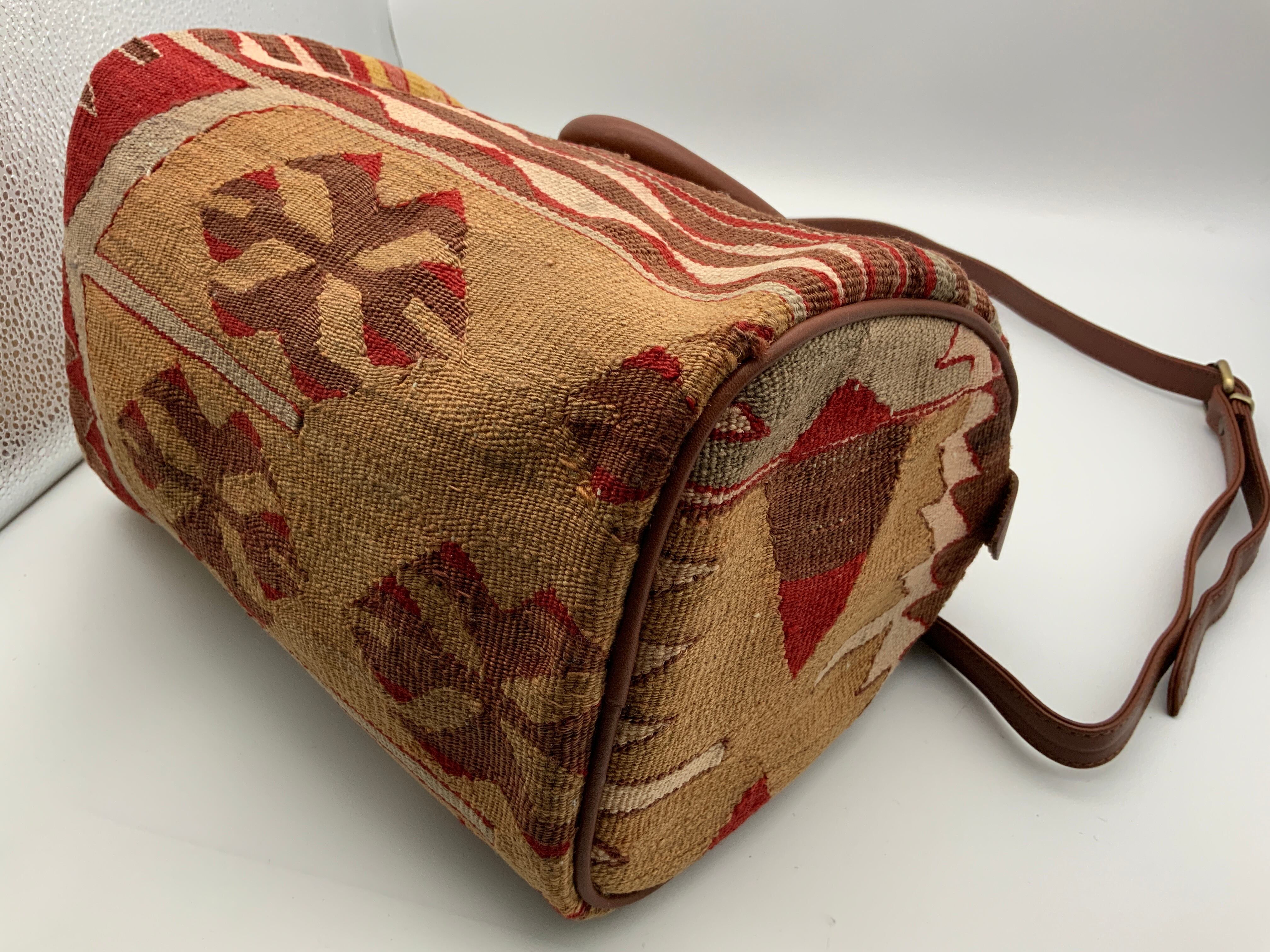 オールドキリムと本革を使用してトルコで作られたバッグです。草木染、手織りされたオールドキリムの深みのあるカラーが魅力的です。