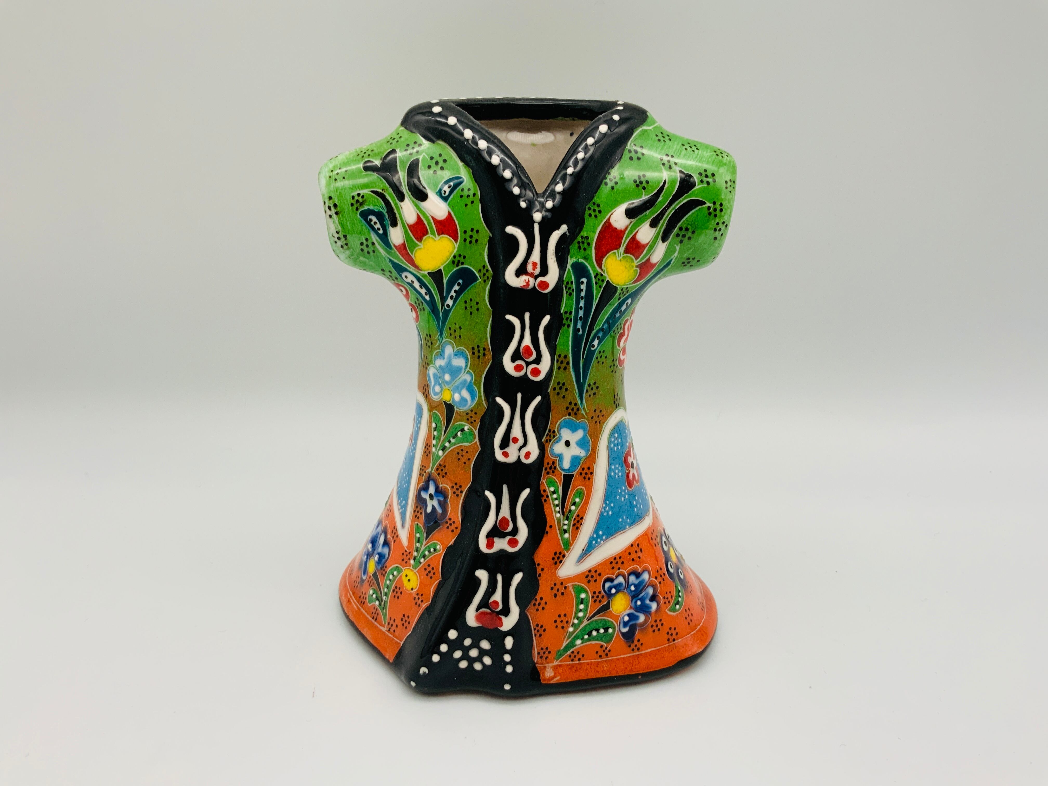 700年以上前よりトルコの伝統工芸として受け継がれてきたオリエンタルムードたっぷりなトルコキュタフヤ焼きでトルコの民族衣装「カフタン」をかたどった飾りです。