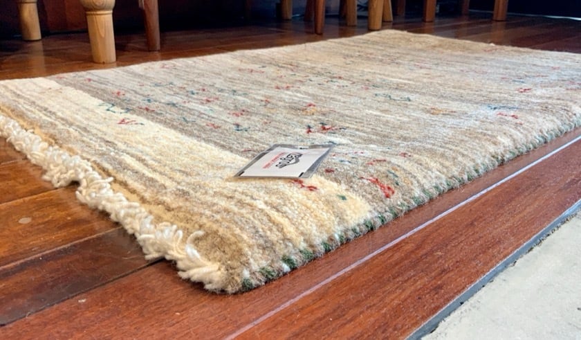 素 材・・・仔羊の毛を手で紡いで糸にしていますので、柔らかく肌触りの良いギャッベに仕上がります。また、混ざりのないピュアウールを使用していますので、お子様のいるご家庭でも安心して使っていただけます。