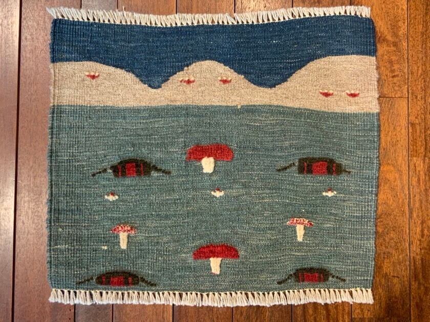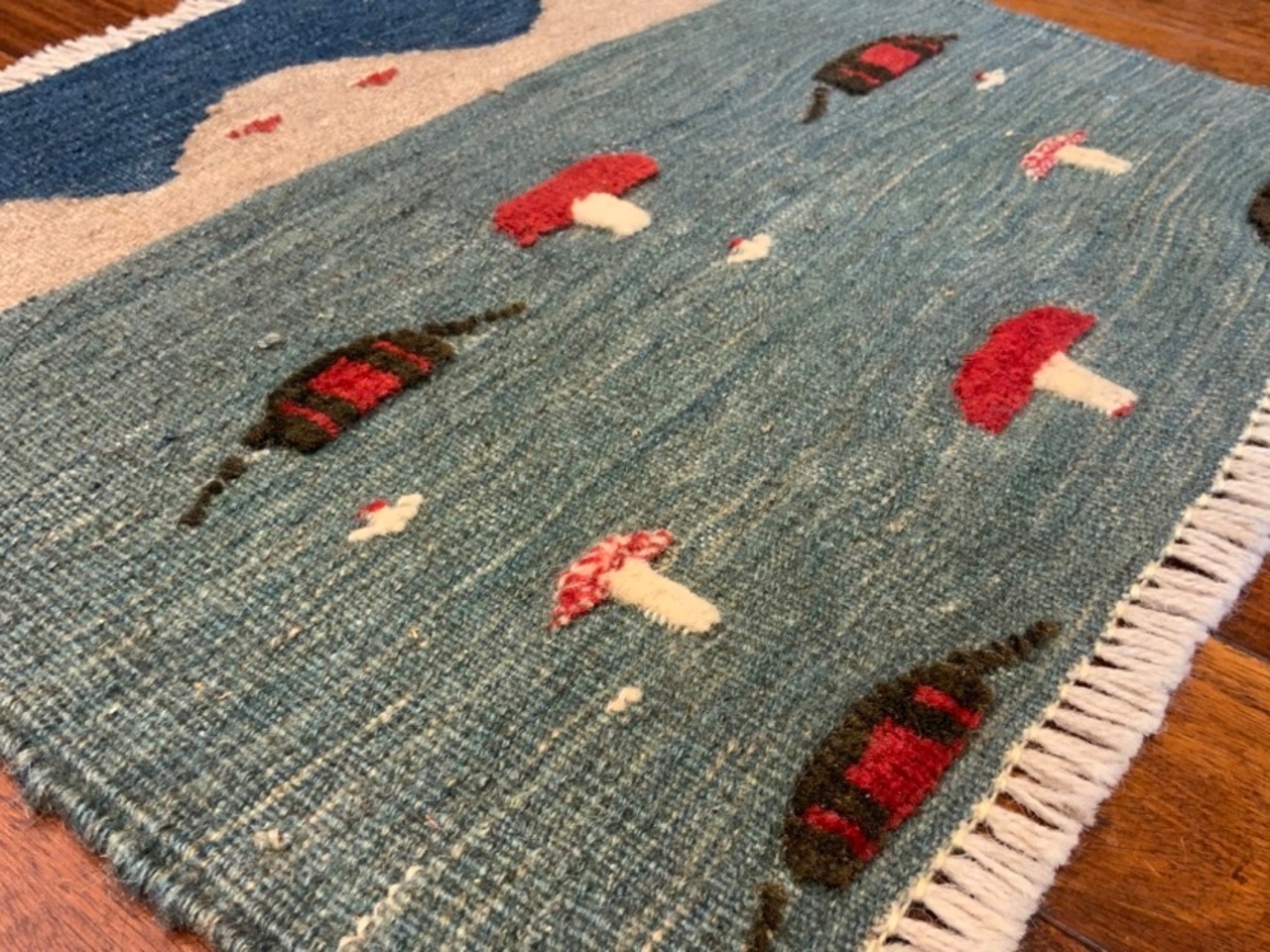 そんなキリムにギャッベでかわいらしいモチーフを織り込んでいるギャッベキリム。