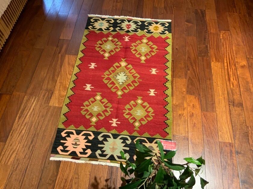 【お手入】 普段のお手入れは掃除機をかけるだけで十分です。天気の良い場所に干したり、敷き場所や方向など定期的に変えたりする事も長持ちの秘訣です。汚れが気になりクリーニングをお考えの場合には、専門店でのクリーニングをお勧めします。当店でも承りますのでご相談ください。また、長期間使用しないまま保管される場合は、汚れをとり、湿気のない風通しの良い場所に保管して下さい。手織りのキリムはお手入れ次第で一生あるいは次の世代まで受け継いでいただけます。