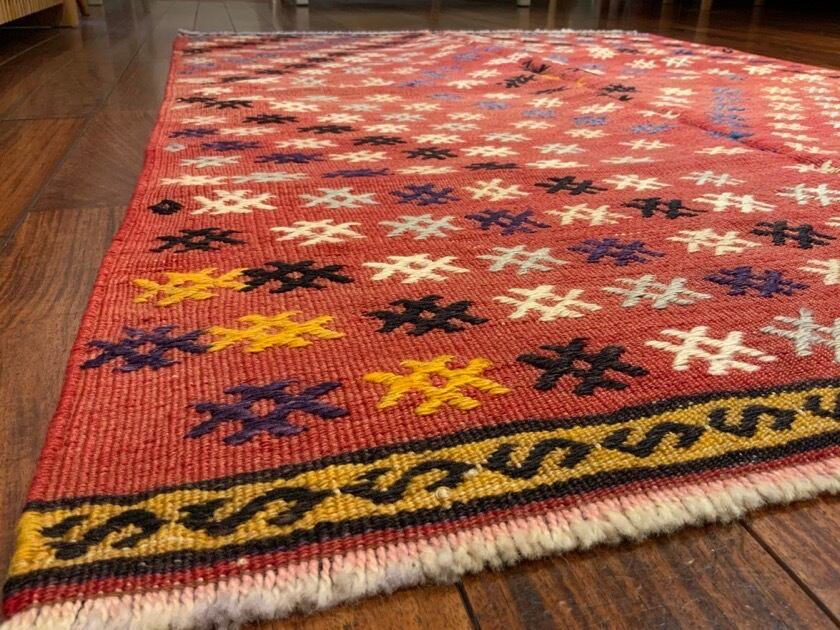 そんな平織りのキリムに伝統柄を刺繍したジジム織りのキリムです。