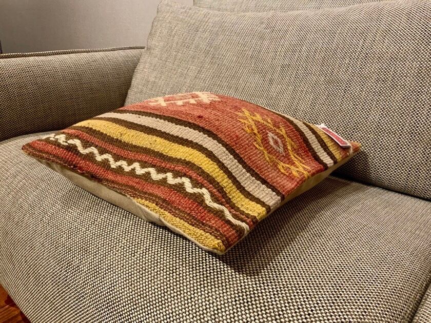 何十年も前に織られたオールドキリムの状態の良い部分をカットして、キリムのクッションカバーにしました。何回も洗い、日に当ててこそ出てくる色合い風合いに趣きを感じます。ソファーにいくつか並べてお洒落にディスプレイしてみてはいかがでしょう。