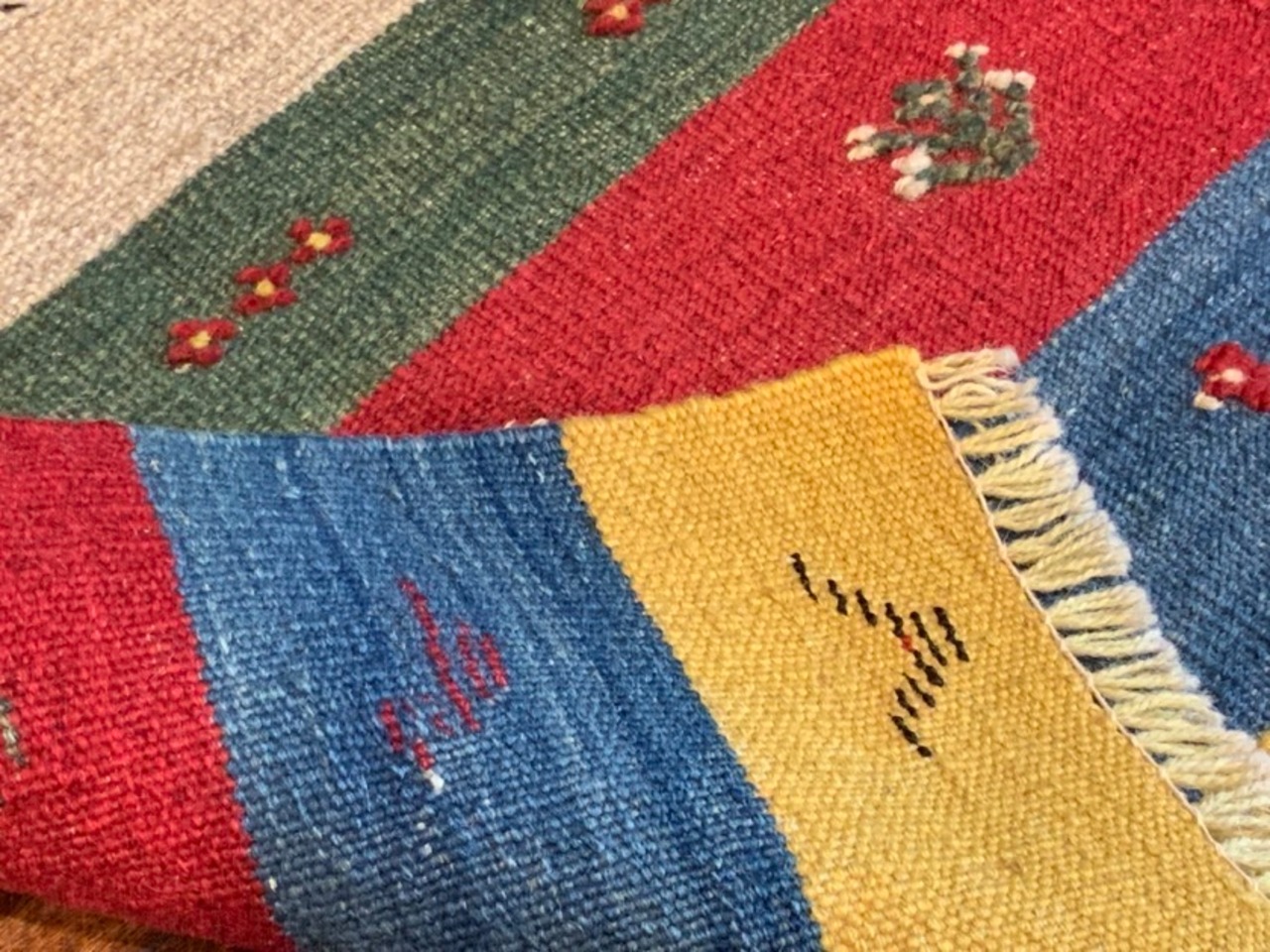 そんなキリムにギャッベでかわいらしいモチーフを織り込んでいるギャッベキリム。