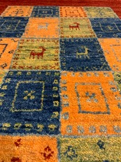 素 材・・・仔羊の毛を手で紡いで糸にしていますので、柔らかく肌触りの良いギャッベに仕上がります。また、混ざりのないピュアウールを使用していますので、お子様のいるご家庭でも安心して使っていただけます。