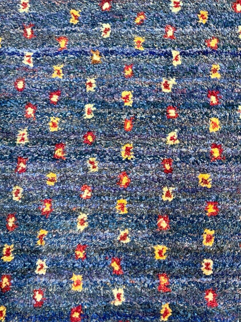 ◇お手入◇ 普段のお手入れは掃除機をかけるだけで十分です。使いはじめは遊び毛が出る事もありますが、使っていくうちに徐々に落ち着いてきます。また、天気の良い場所に干したり、敷き場所や方向など定期的に変えたりする事も長持ちの秘訣です。汚れが気になりクリーニングをお考えの場合、大きいサイズのギャッベですと水を含みかなりの重量になりますので、専門店でのクリーニングをお勧めします。当店でも承りますのでご相談ください。また、長期間使用しないまま保管される場合は、汚れをとり、湿気のない風通しの良い場所に保管して下さい。手織りの絨毯はお手入れ次第で一生あるいは次の世代まで受け継いでいただけます。